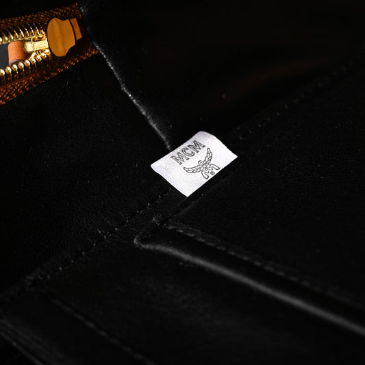MCM Stark Visetos Medium Backpack – Black Monogram with Studded Detailing