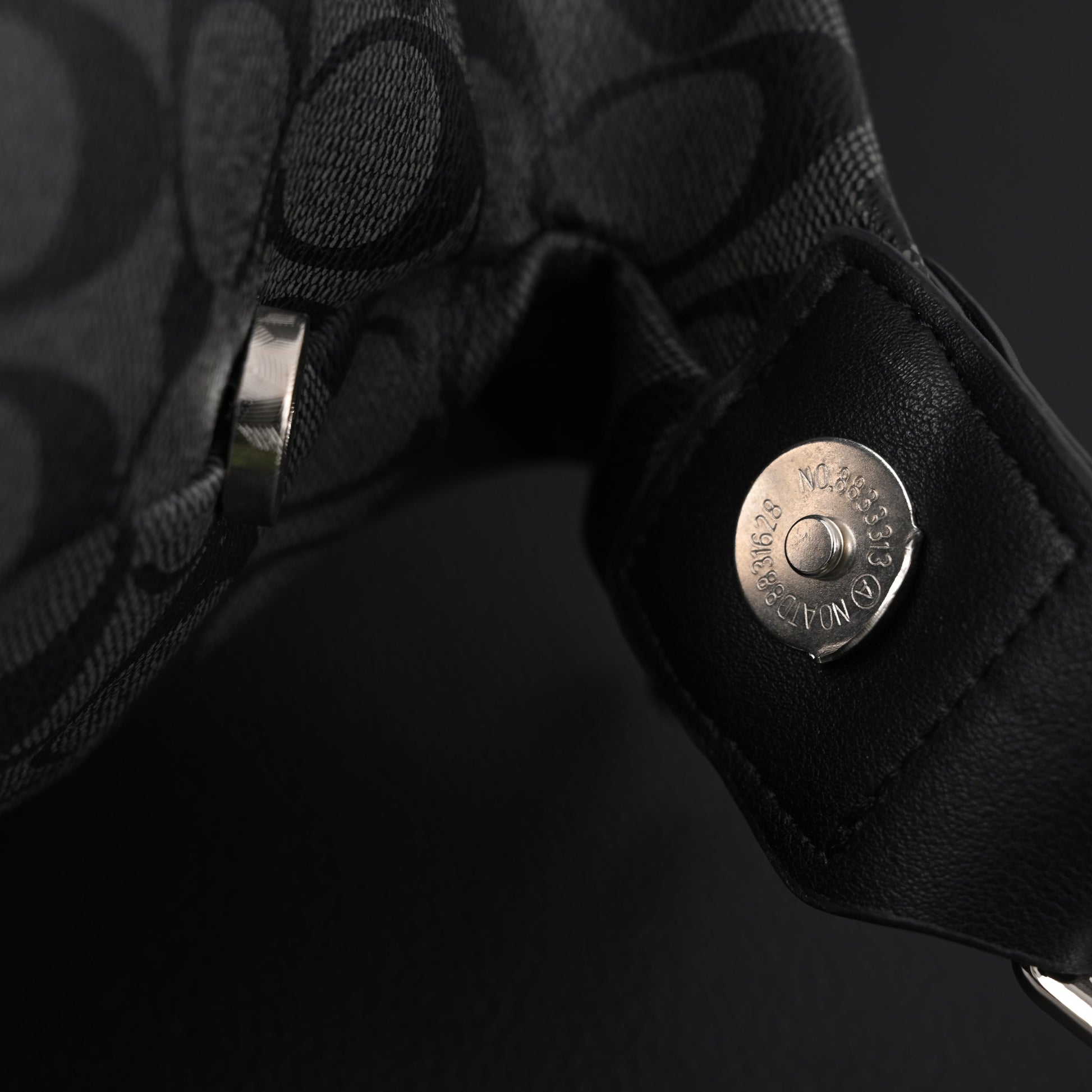 Material: Signature black coated canvas with smooth leather accents