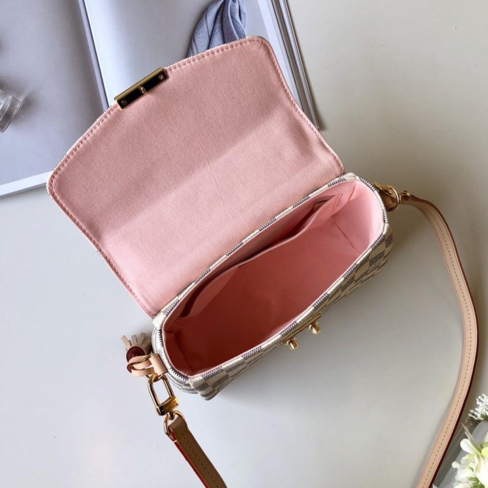A compact bag with modern lines, the Croisette in summery Damier Azur canvas boasts sophisticated details (note the signature S-lock) and a casual-chic allure. The removable leather tassel adds a touch of fun. Sized to fit the essentials plus a long wallet, this versatile piece can be hand-carried, slung over the shoulder or worn cross-body.