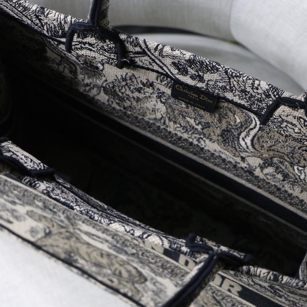 The Dior Book Tote, introduced by Maria Grazia Chiuri, has become a defining icon of the House’s modern aesthetic. This edition is beautifully embroidered with the signature blue Toile de Jouy motif, a pattern that brings timeless elegance and a touch of storytelling to the design. Spacious enough to carry all your daily essentials, the tote is both functional and refined. The bold 'CHRISTIAN DIOR' signature across the front reflects the brand’s heritage and expert craftsmanship. Whether carried by hand or worn over the shoulder, this piece makes a graceful and versatile companion.