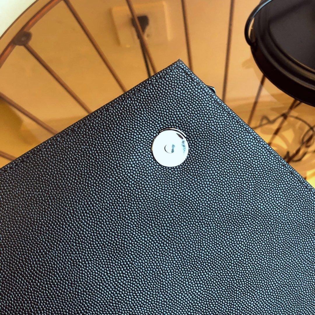 A timeless design crafted from metal-free, chrome-free tanned calfskin leather, the Saint Laurent Monogram Envelope Bag combines elegance with modern craftsmanship. The signature front flap features a magnetic snap closure, adorned with metal YSL initials, and showcases a luxurious mix of vertical, chevron, and diamond quilted overstitching.