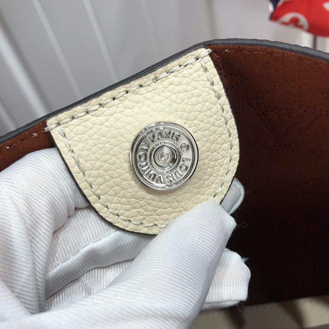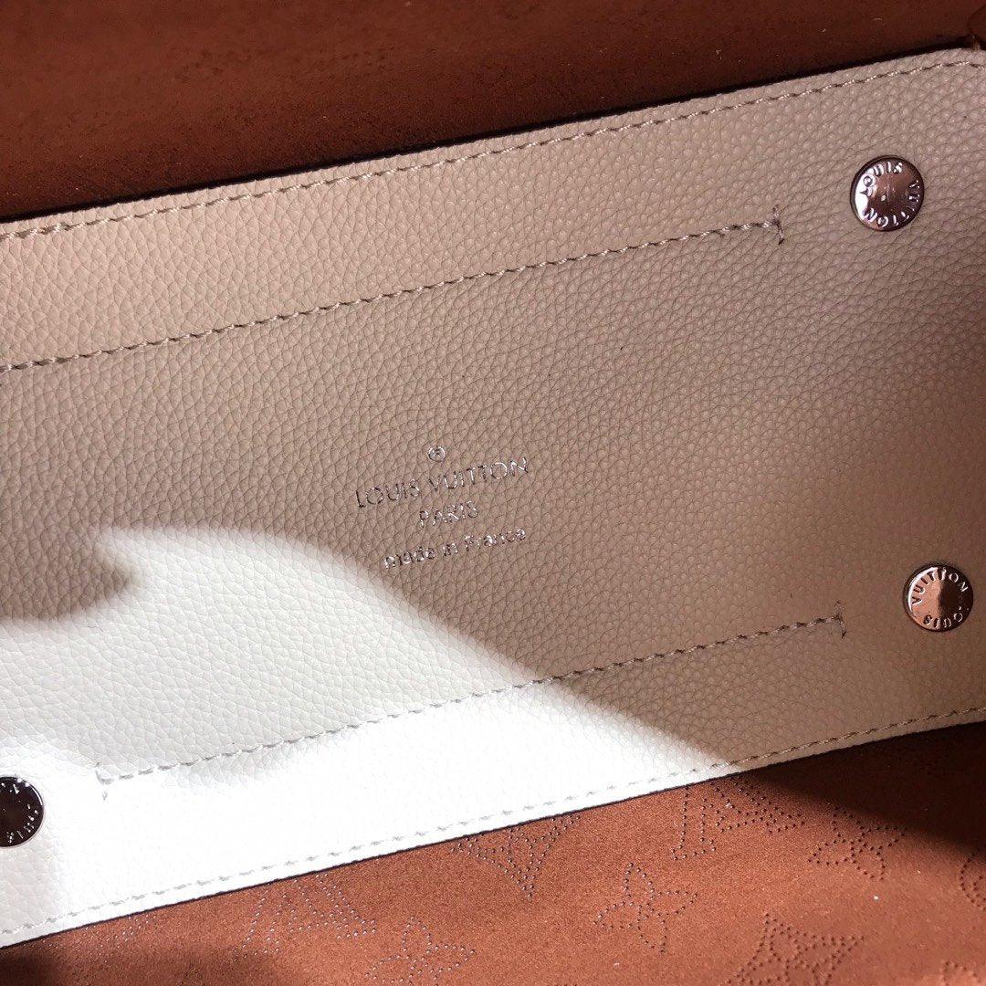 Two bags in one: with its sides gathered in and fastened, the Hina PM is an on-point bucket model; opened wide, it becomes a small casual tote. Made from perforated Mahina calf with calf-leather trim, this model is light and comfortable to carry, either by the two top handles or cross-body on the detachable strap.