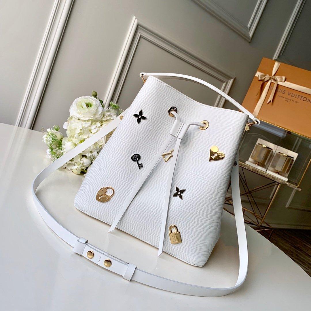 The bold LV Initials and Monogram heart and lock charm bring a fashionable feel to this NéoNoé MM bucket bag. The motif is first on the leather then embossed to enhance the hypnotic effect. This versatile bag can be worn cross-body or over the shoulder, thanks to its adjustable strap. Inside, a zipped pocket keeps valuables secure.