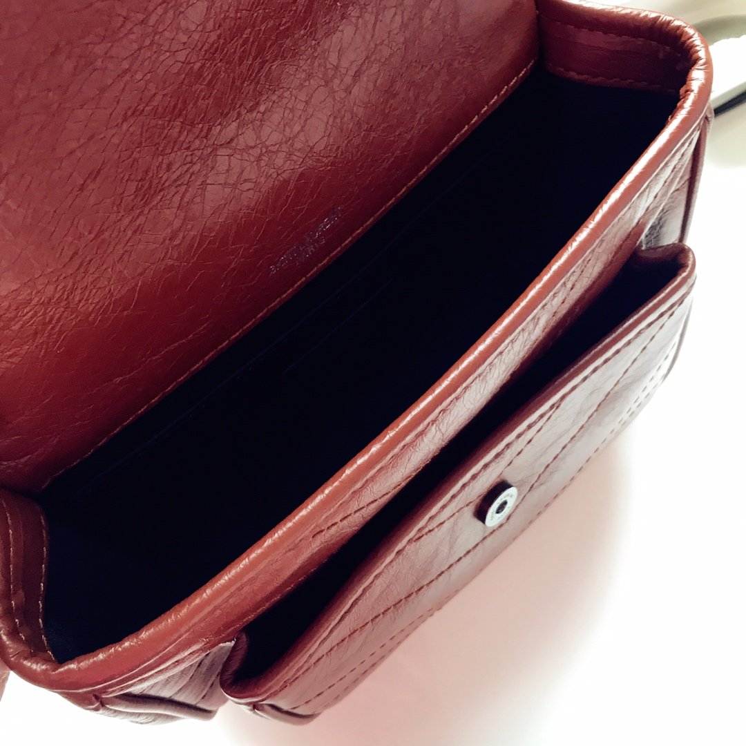 - Interior: 1 central compartment, 1 open pocket, 1 pocket under the flap