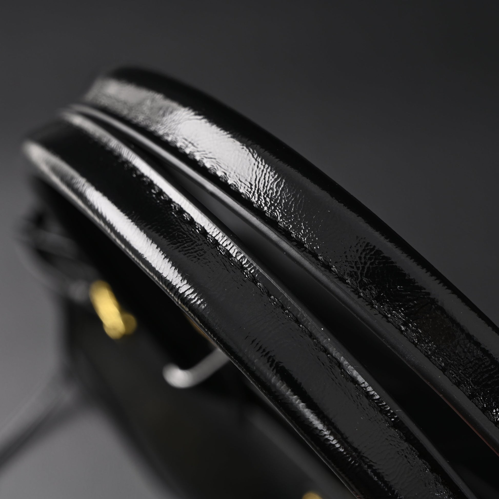 The Prada Cleo Shoulder Bag is a modern icon, effortlessly blending vintage charm with contemporary minimalism. Crafted in sleek black patent leather, its structured silhouette is accented with the signature Prada triangle logo plaque and finished with refined gold-tone hardware for a polished look.
