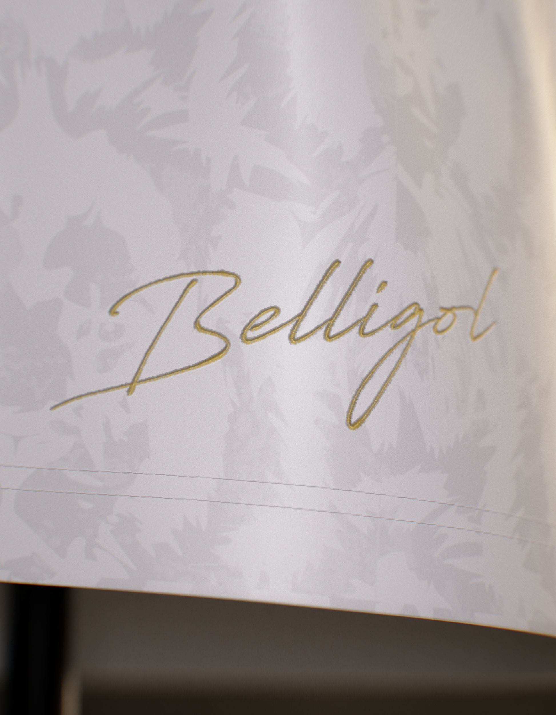 A minimalist white jersey featuring a subtle pattern inspired by The Lions, and three carefully embroidered gold lions over the classic red cross. For the team bursting with talent, youth, and confidence.