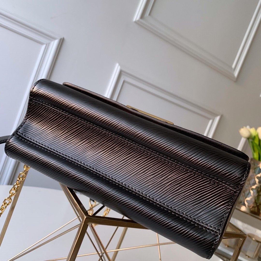 We guarantee this is LOUIS VUITTON Veau Satin Monogram Twist Shoulder Bag MM Black or of your money back. This stylish shoulder bag is crafted of supple satin black calfskin leather, paired with a reverse and classic monogram toile canvas, and perforated brogues detail flap. The bag features a polished brass chain link shoulder strap with a leather pad, and a matching brass LV twist lock on the facing flap. This opens the bag to a spacious black microfiber interior with patch pockets, and a removable mirror.